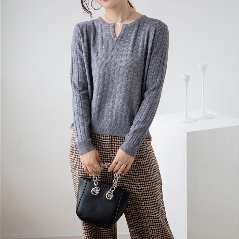 内搭上衣 高级感独特气质修身 韩系学院风v领针织衫 毛衣女秋冬新款