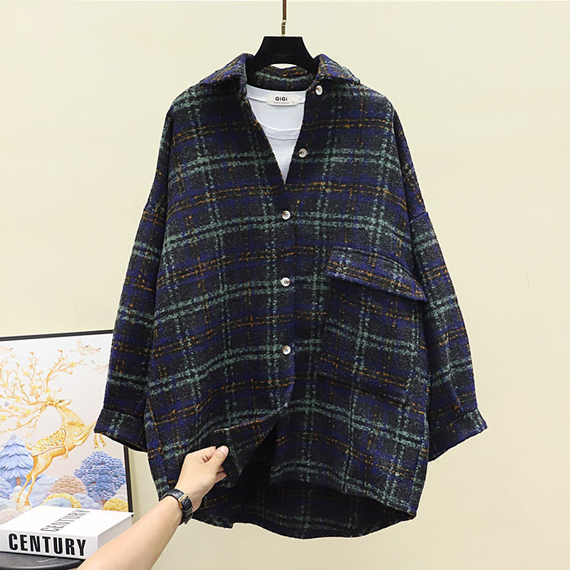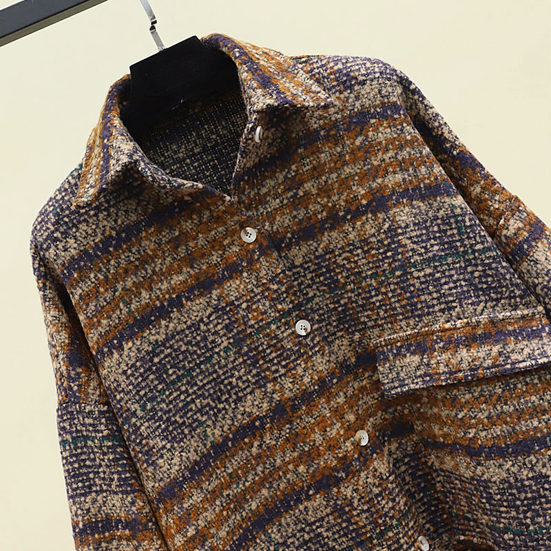 宽松加厚磨毛上衣 港味韩版 衬衣女2025春秋季 外套复古毛呢格子衬衫