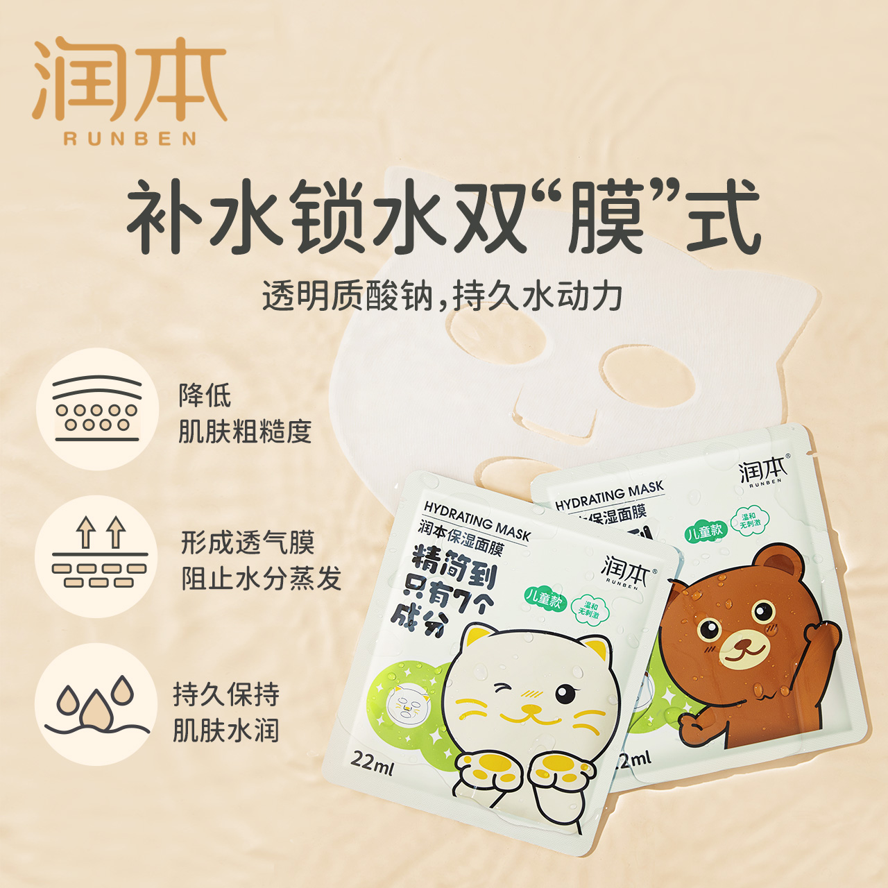 润本儿童面膜女孩宝宝专用6到12岁小朋友晒后舒缓补水保湿 男孩子