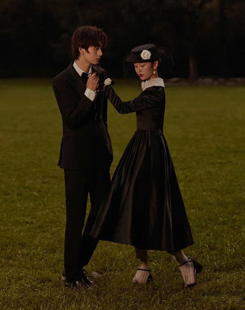 影楼主题服装 赫本风写真拍照礼服 英伦旅拍文艺婚纱摄影黑色长袖