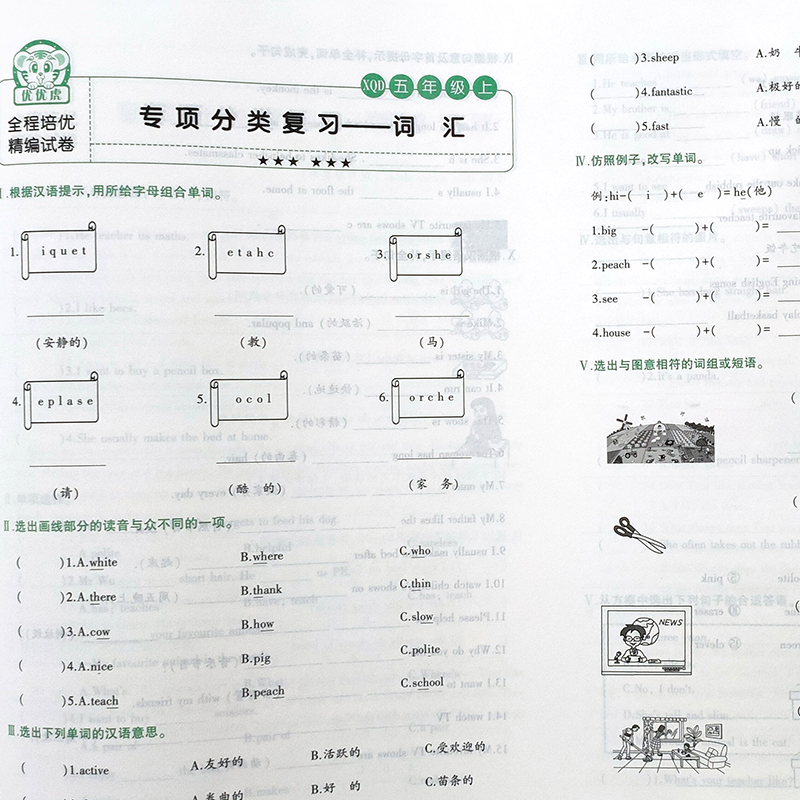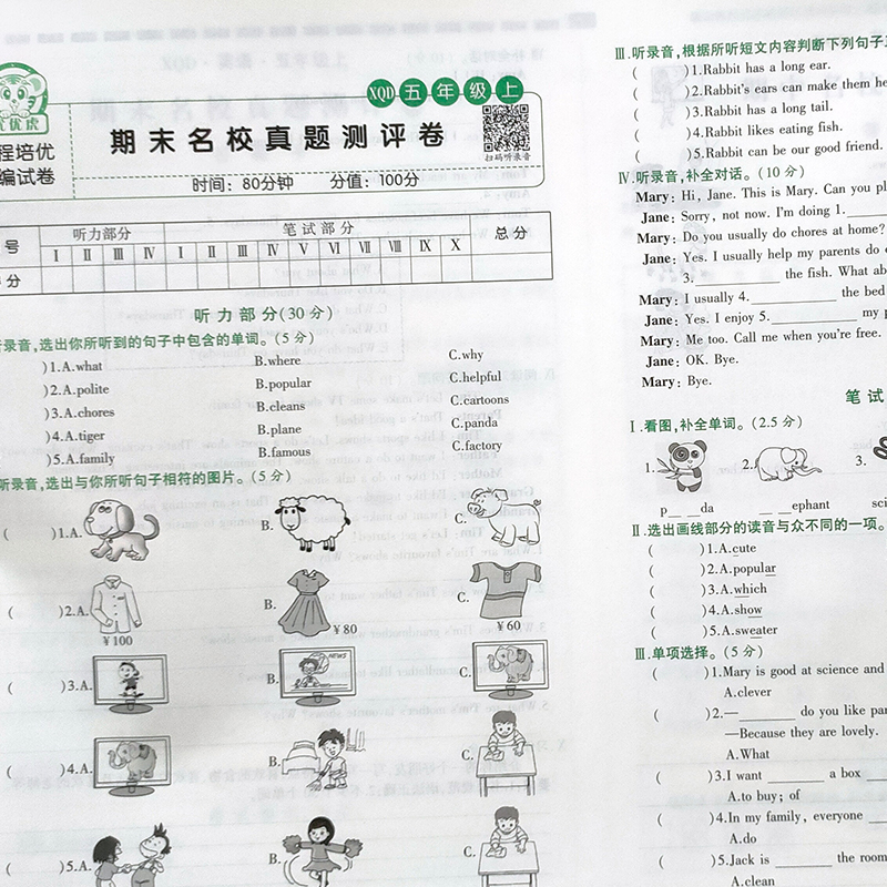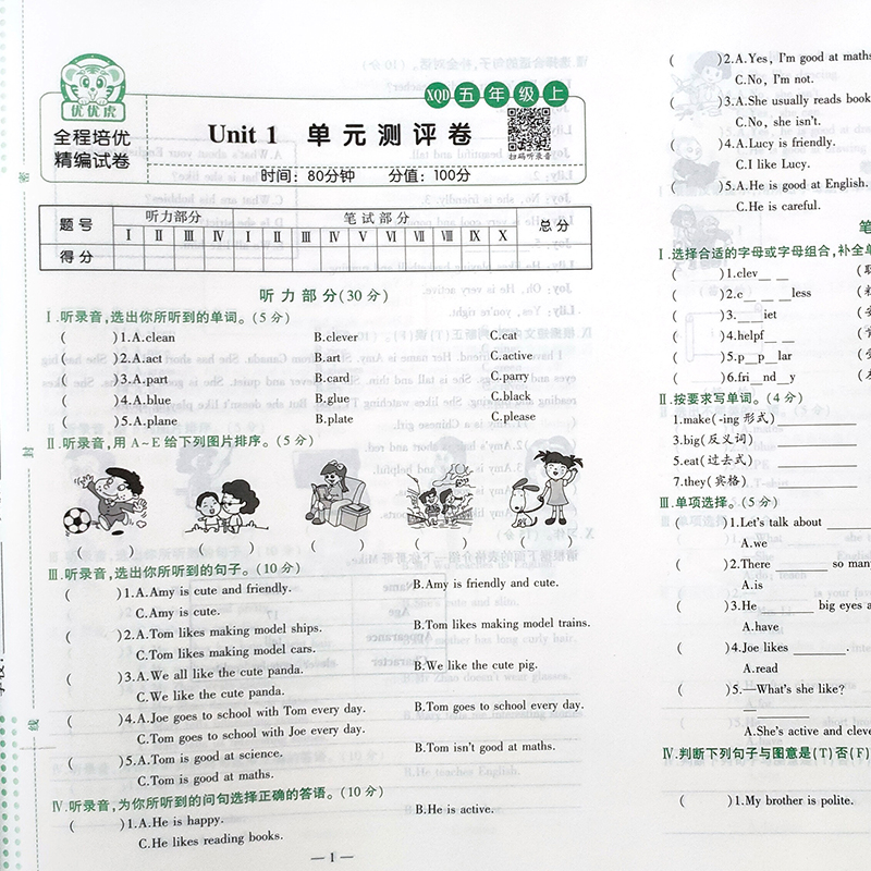 1一起点SL听力同步测试卷子 一起英语试卷五年级上册新起点XQD黄冈海淀全程培优必刷卷小学五年级上册英语试卷人教版 2025新版 人教版