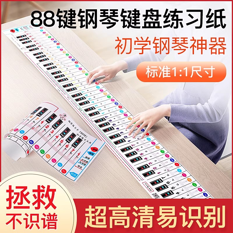 便携钢琴键盘图纸88键初学者指法练习卡手卷琴练五线谱简谱对照表
