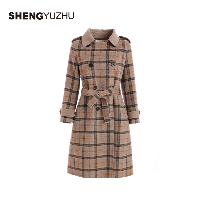 POPCHRIO欧可芮 羊毛外套女 驼绒大翻领双面毛呢呢子大衣中长短款