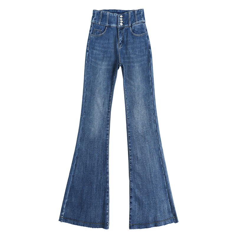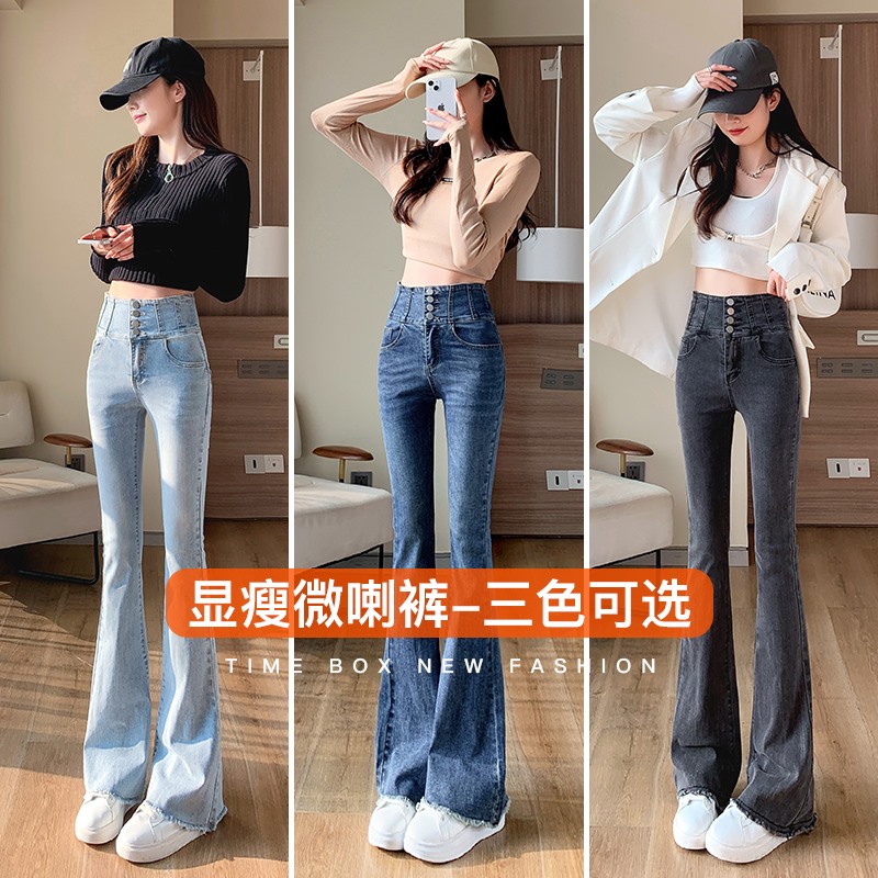 高腰弹力显瘦辣妹喇叭裤 女2025秋冬新款 子 加绒微喇牛仔裤 黑色修身