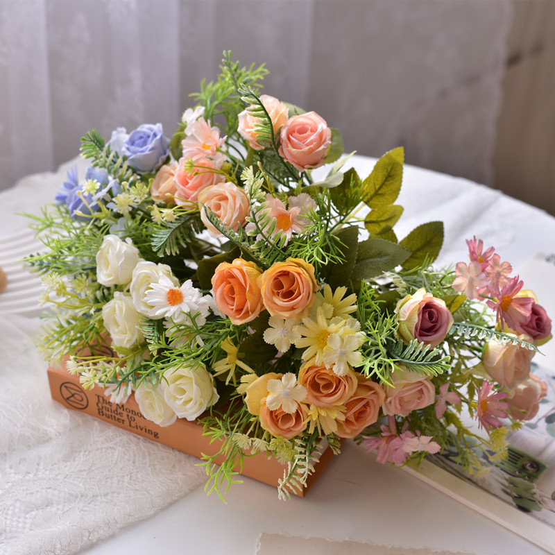 北欧假花仿真花束塑料花小束把花玫瑰绢布花干花家居摆设装 饰花艺