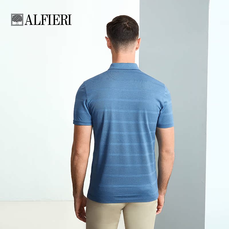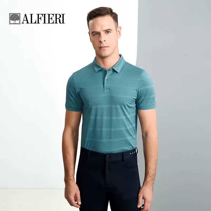 清仓 含桑蚕丝暗条纹提花设计翻领款 艾法利 夏季 T恤 男装