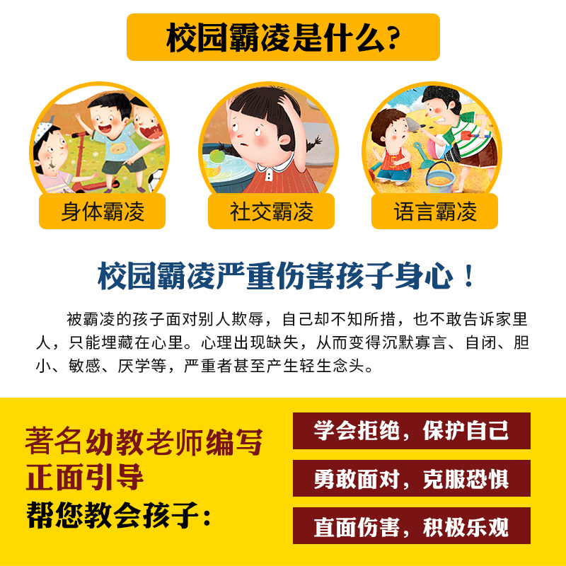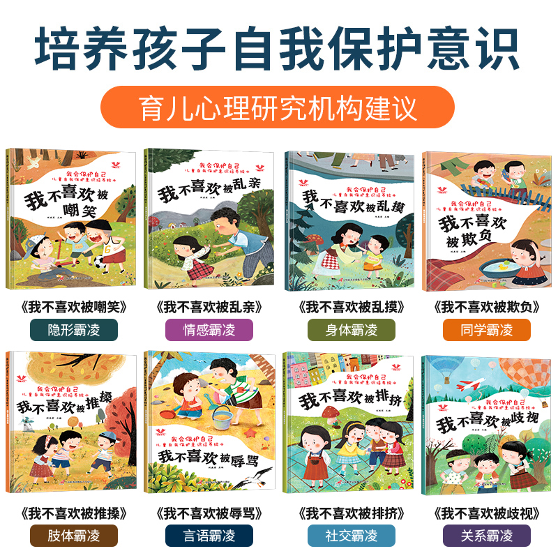 6岁我不喜欢被欺负我会保护自己儿童自我保护意识培养绘本不喜欢推搡不喜欢被辱骂校园 儿童反霸凌启蒙逆商培养儿童绘本3 全8册