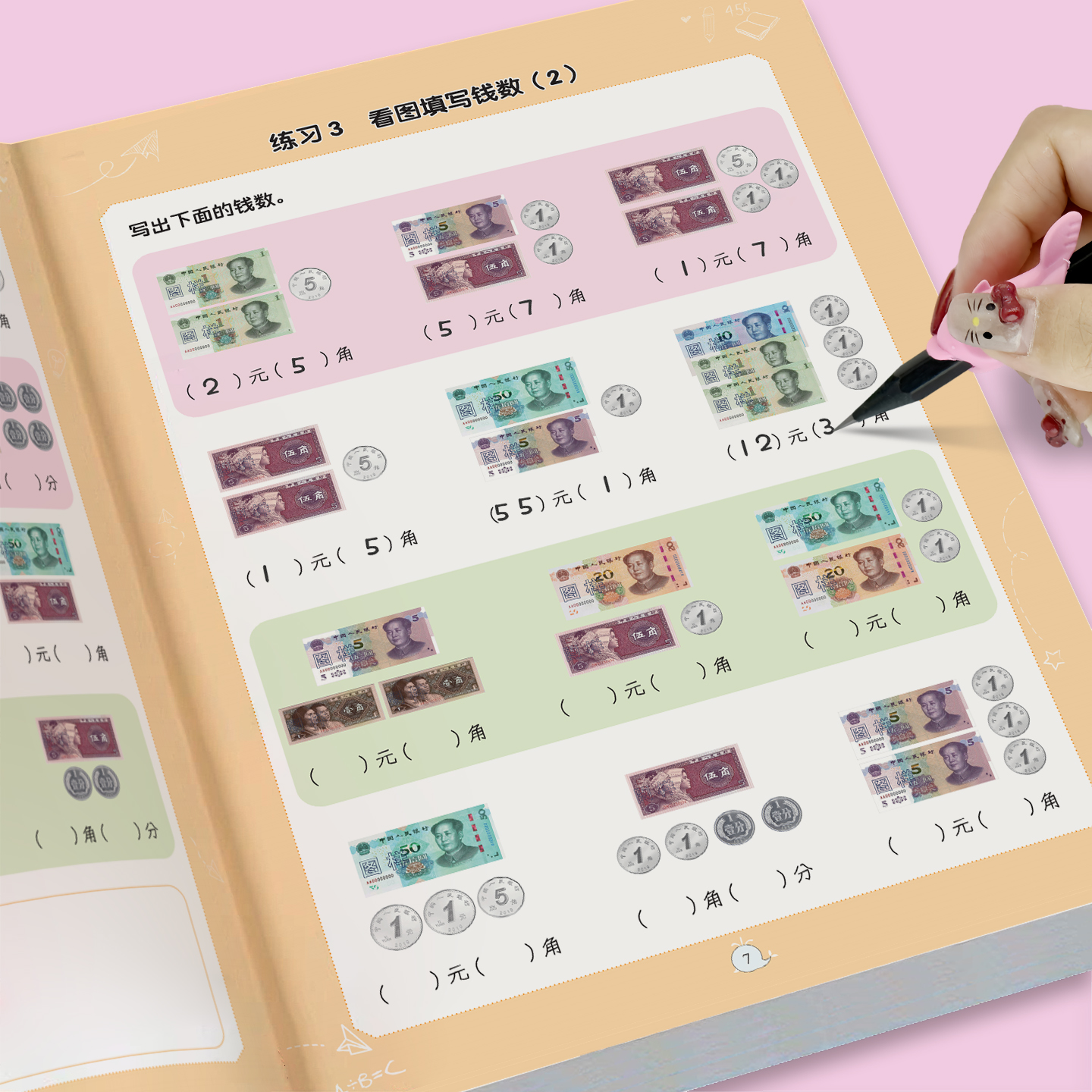 认识钟表和时间认识人民币单位换算小学数学专项训练全3册一二三年级人教版 角分单位换算教具同步钱币学具 专项训练小学元