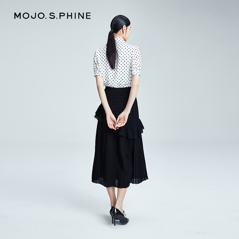 MOJO莫佐复古俏皮荷叶边半身裙2024年夏季 青春活力百搭长裙女 新款