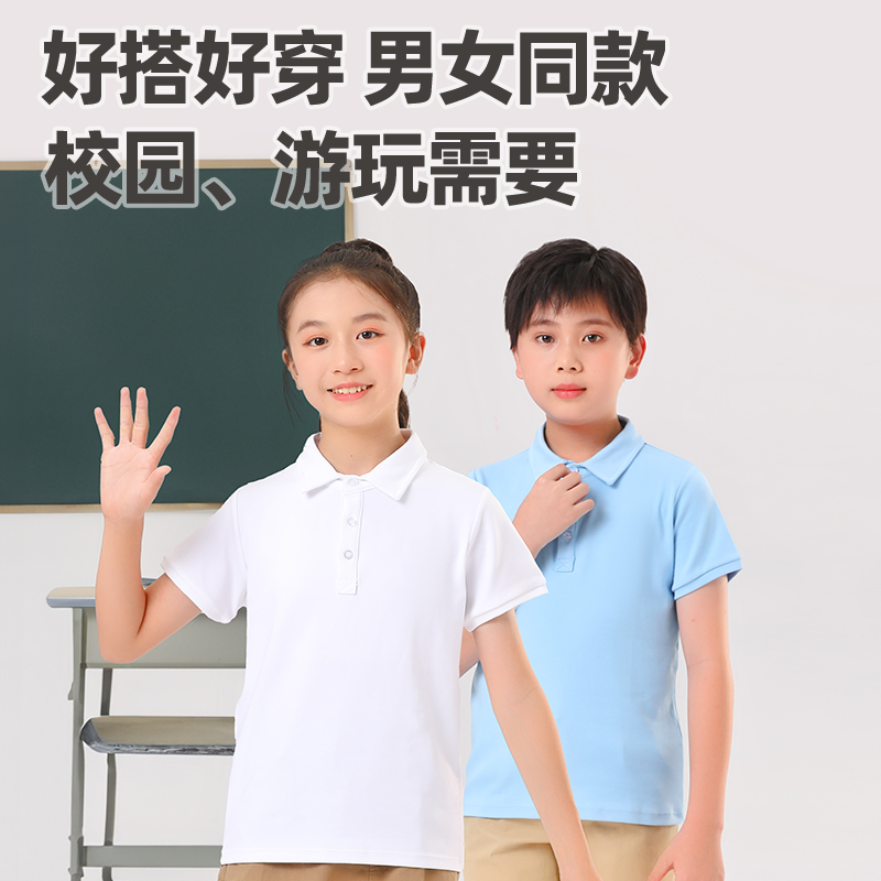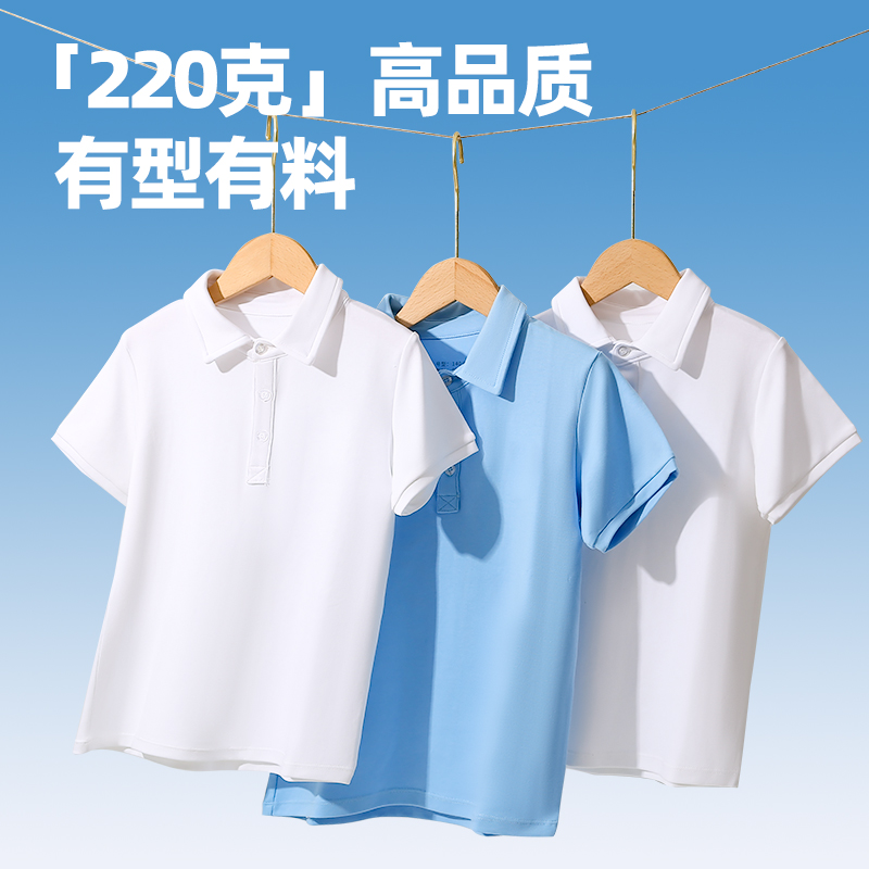 女童装 儿童polo衫 男童中大童白色夏装 小学生校服套装 纯棉t恤短袖