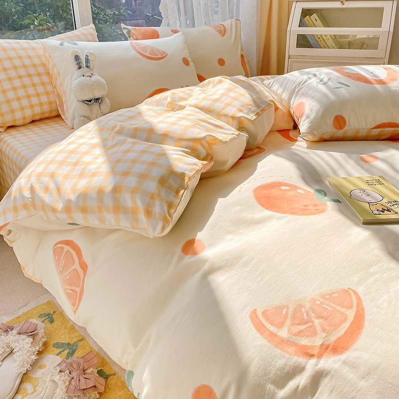 无印良品全棉床单学生宿舍纯棉卡通儿童被套秋冬三件套床上用品