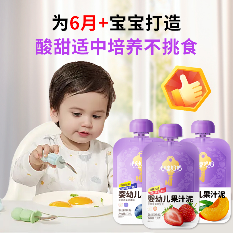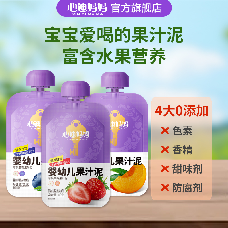 心迪妈妈婴幼儿果汁泥100g3袋儿童果泥 U先试用