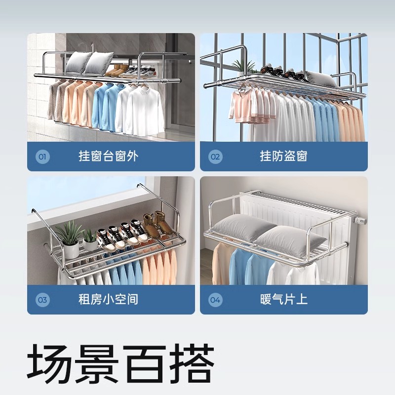 阳台晾衣神器防盗网窗户护栏杆晾衣架挂室外家用挂钩凉晒鞋 置物架