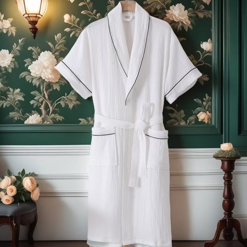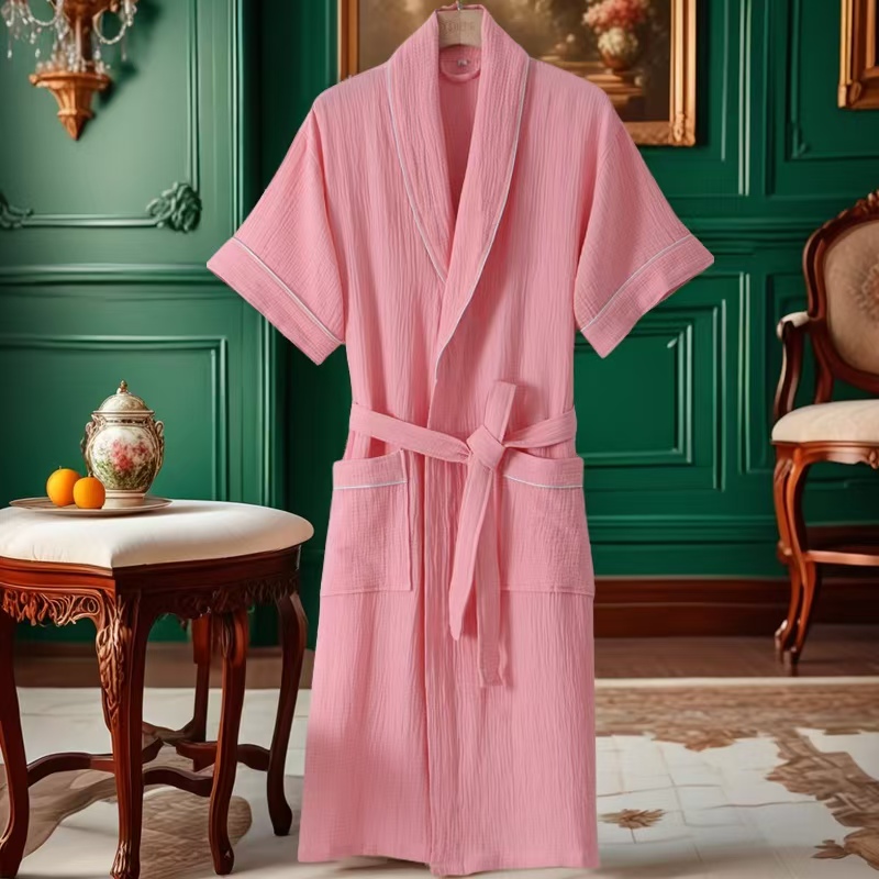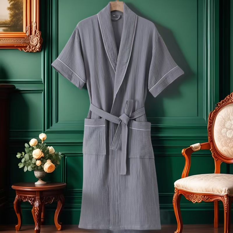 纯棉浴袍半袖 泡泡纱睡袍睡衣双层纱布家居和服日系男女情侣汗蒸服