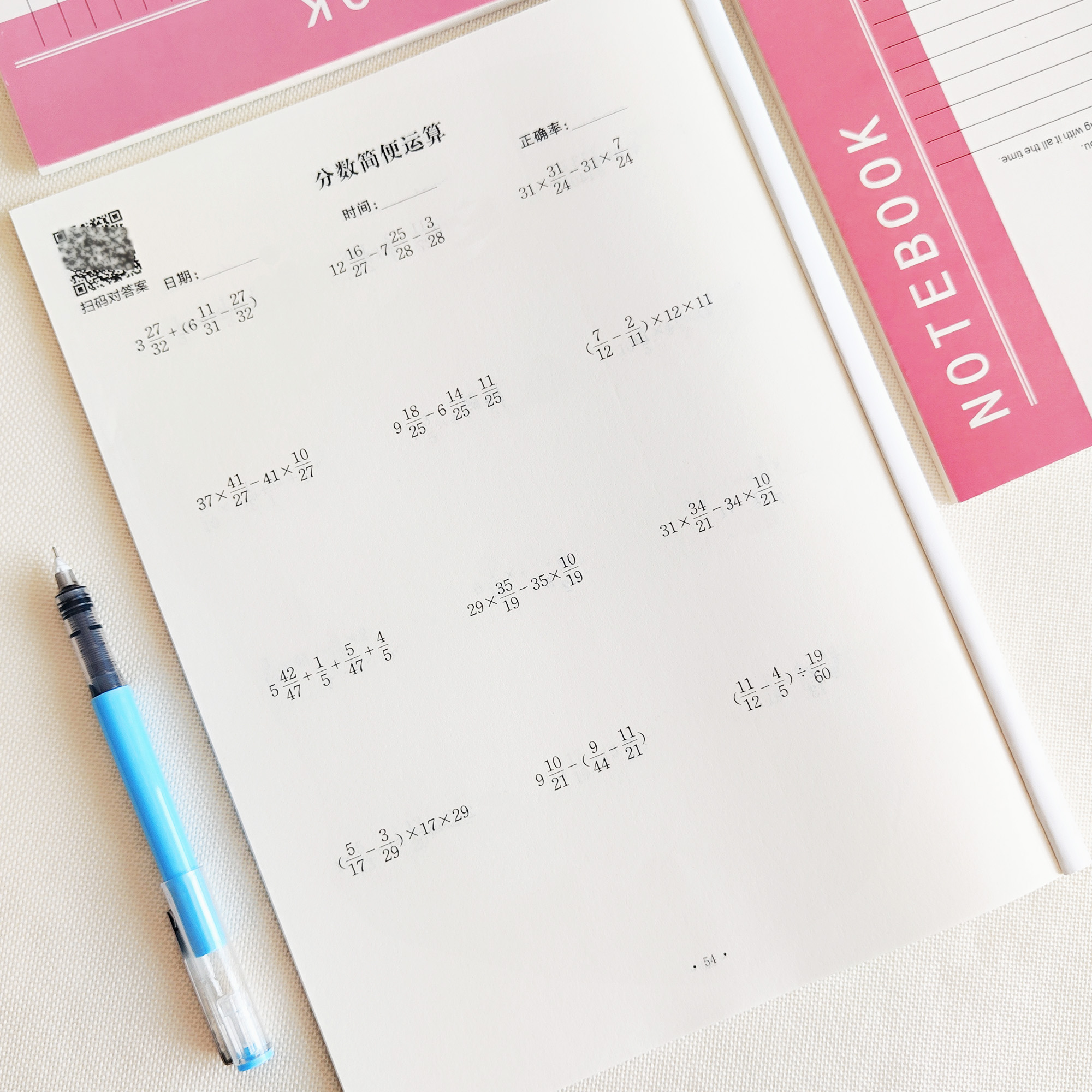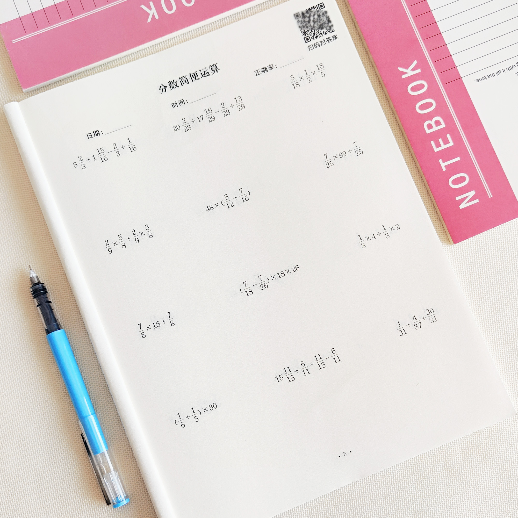 小学六年级分数简便运算专项训练加减乘除四则混合运算综合练习口算题卡计算题强化训练笔算脱式 真假分数每日一练天天练寒暑假作业