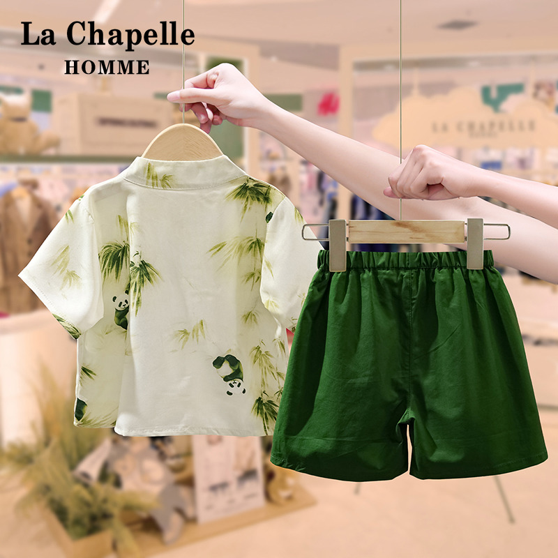 男童汉服套装 唐装 夏季 儿童宝宝国风熊猫衬衫 2025新款 拉夏贝尔童装