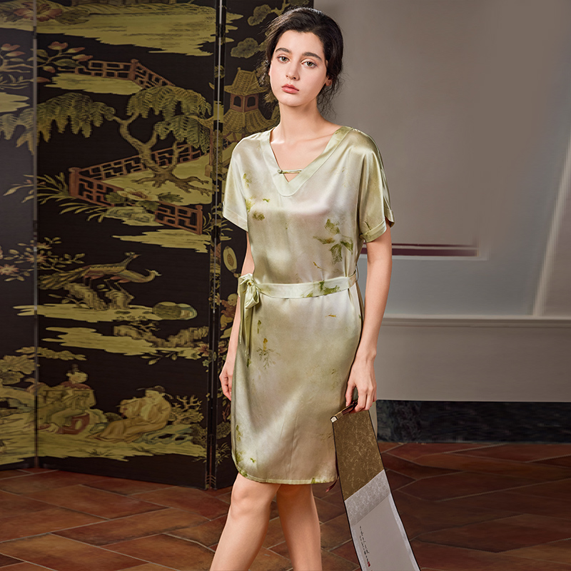 美标短袖 中国风丝绸冰氧凉感睡衣 真丝睡裙女夏桑蚕丝家居服新中式