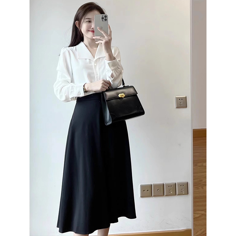 胖mm梨形身材高腰显瘦中长款 夏季 大码 黑色半身裙女新款 a字裙 爆款