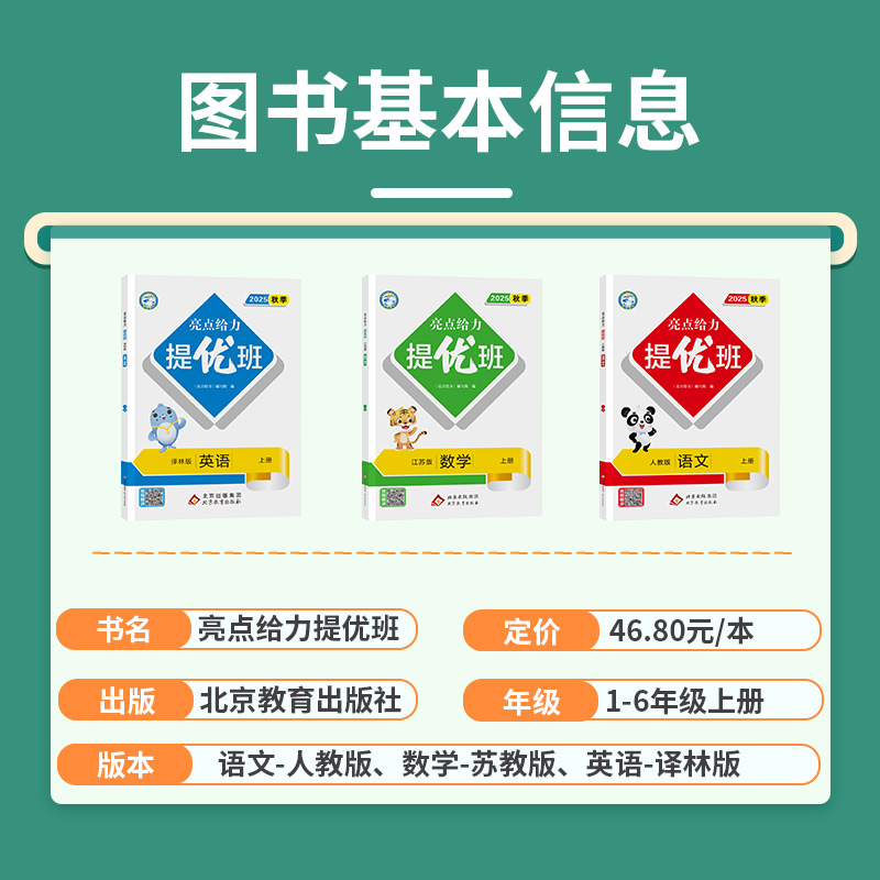 一二三四五六年级123456年级上册下册小学教辅练习册同步教材 数学英语译林版 2025秋亮点给力提优班多维互动空间人教版 语文苏教版