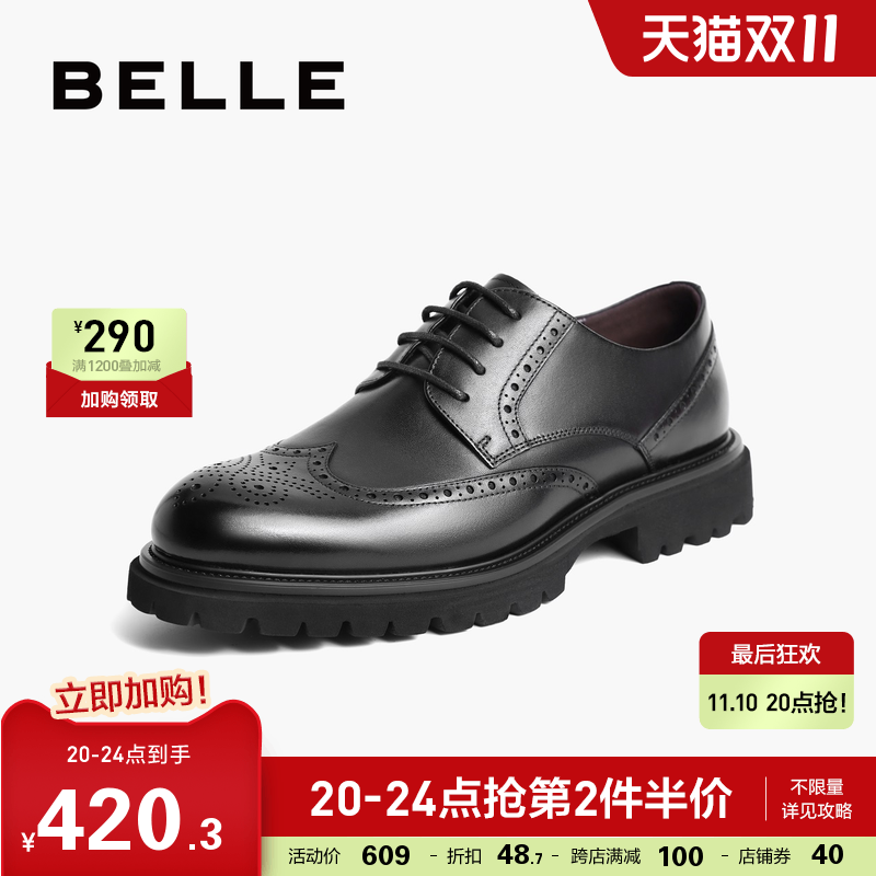 布洛克增高厚底德比新郎婚鞋 男新款 A0775AM3 商务圆头皮鞋 百丽男鞋