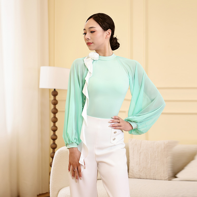 CONNY拉丁舞服上装 舞蹈练功连体上衣女士成人跳摩登舞假两件长袖