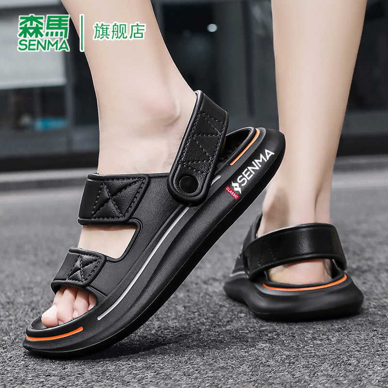 防臭防滑EVA厚底外穿户外沙滩鞋 准者小鲨鱼篮球运动凉拖鞋 男秋季