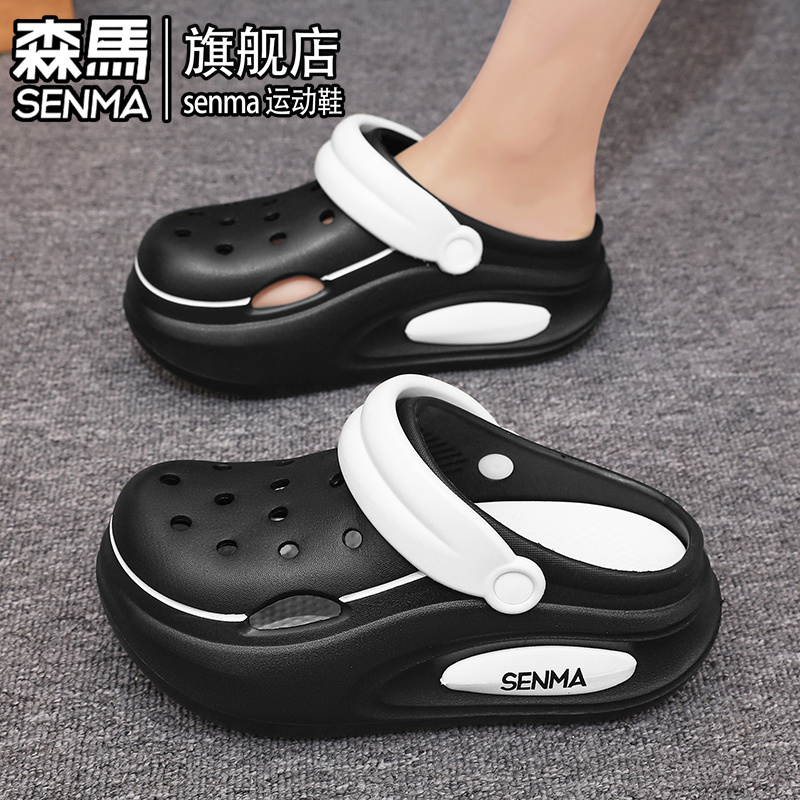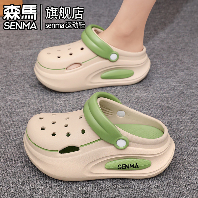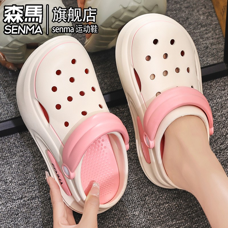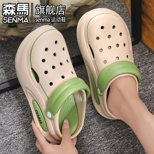 厚底增高沙滩凉鞋 森马洞洞鞋 外穿防滑防臭包头拖鞋 新款 女2025夏季