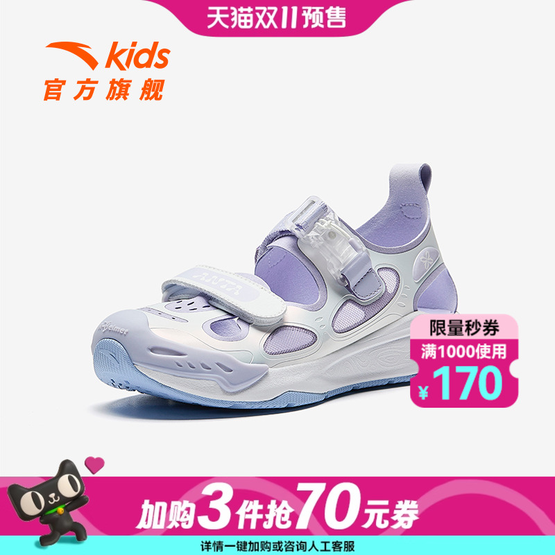 透气防滑耐磨中大童包头凉鞋 新款 潮 2025夏季 安踏儿童女大童沙滩鞋