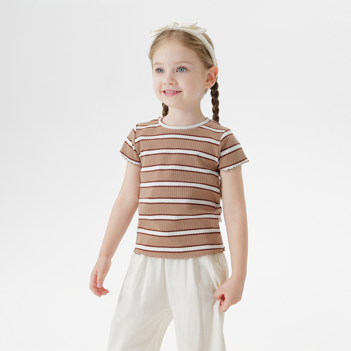 550716 宝宝上衣2025年春夏新款 马克珍妮女童多彩条纹夏日短袖 T恤