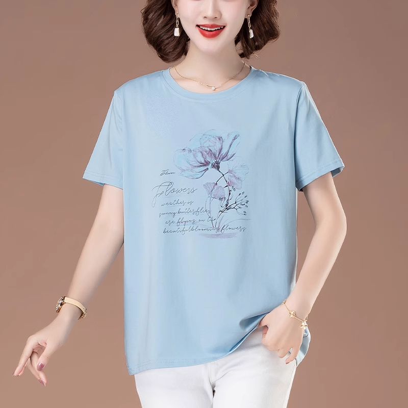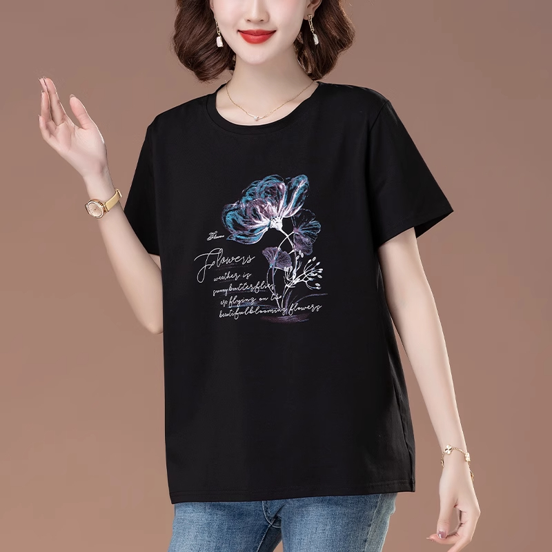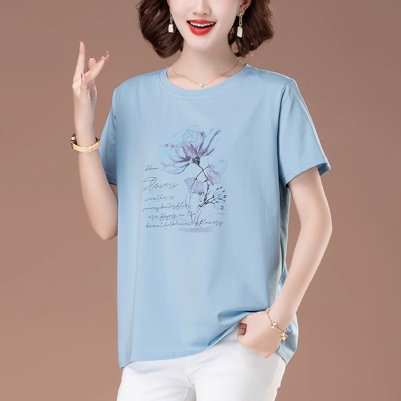 纯棉短袖 汗衫 T恤女中长款 宽松中老年妈妈夏季 2025新款 加肥加大码