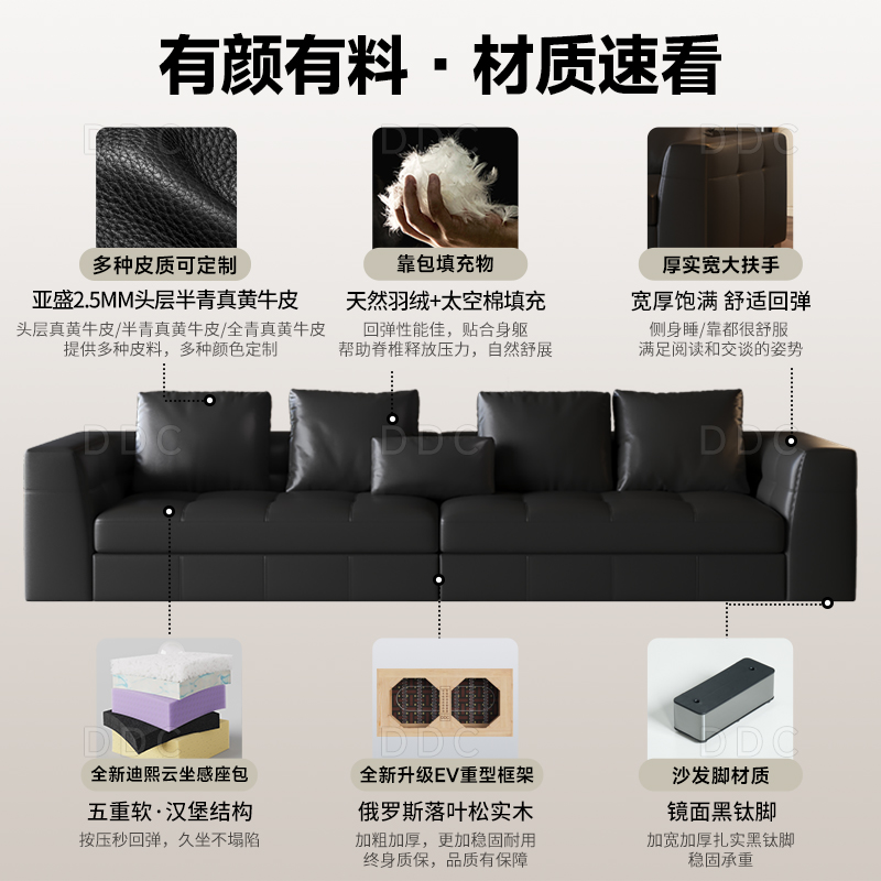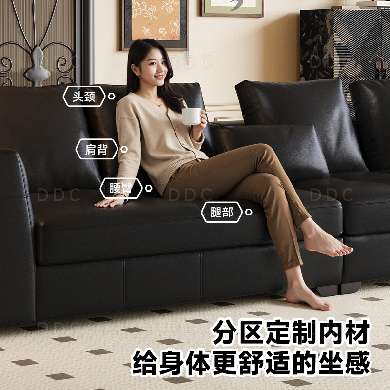 政府补贴DDC布雷泽真皮沙发新款 别墅大平层黑色全青皮沙发高级感