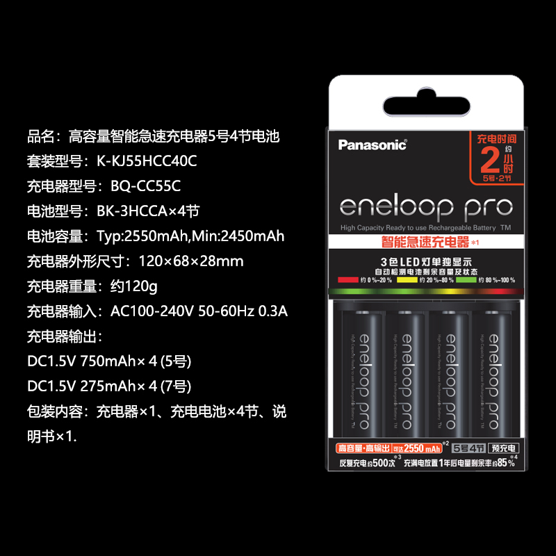 松下eneloop爱乐普高容量57号充电电池KTV无线话筒单反相机闪光灯日本进口55急速智能充电器套装 1.2V镍氢电池