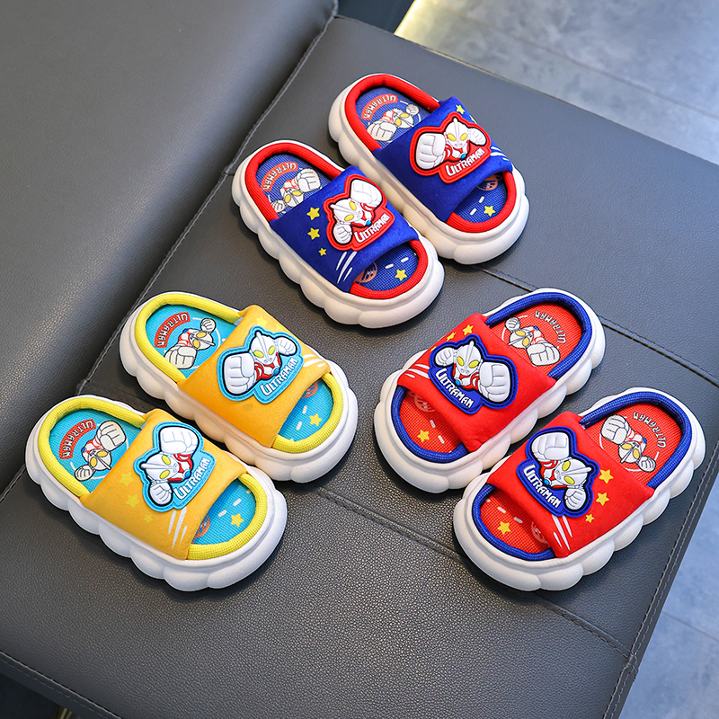 奥特曼春秋四季 男童室内家居防滑透气厚底大中童宝宝 儿童亚麻拖鞋