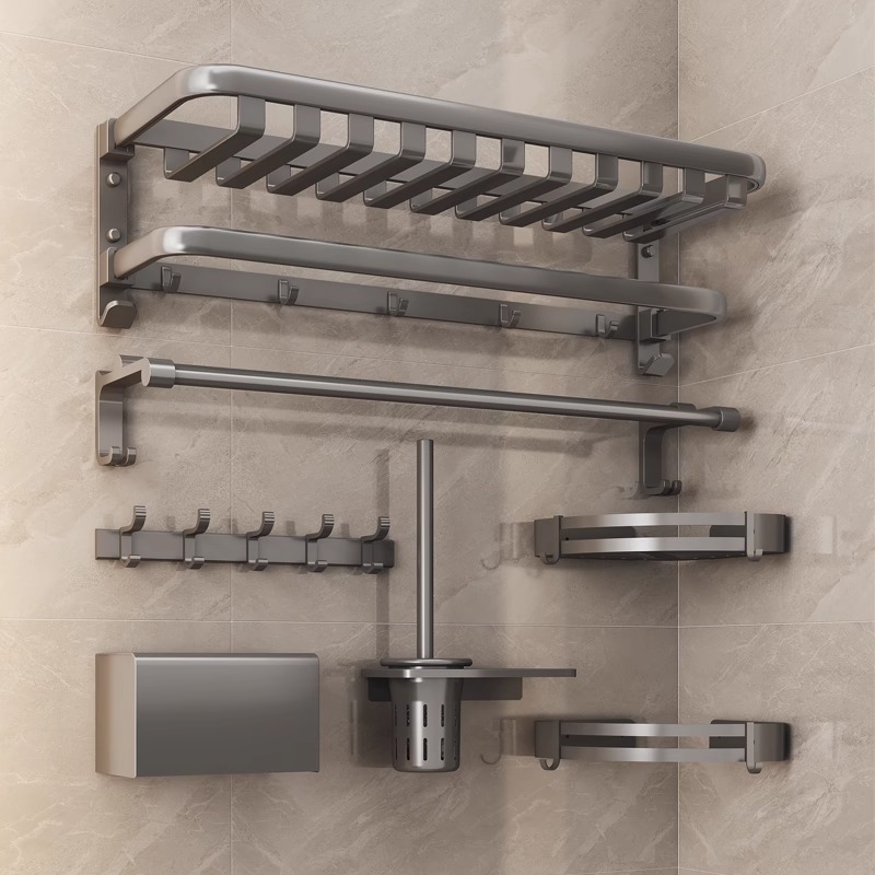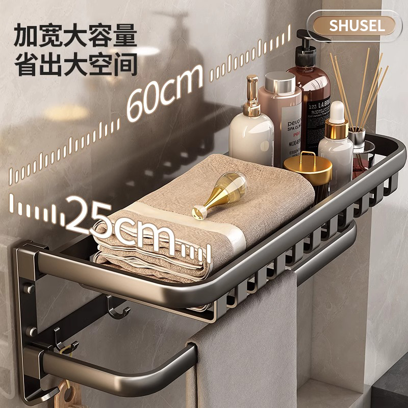 枪灰色毛巾架浴室置物架折叠浴巾架免打孔卫生间厕所卫浴套装 壁挂