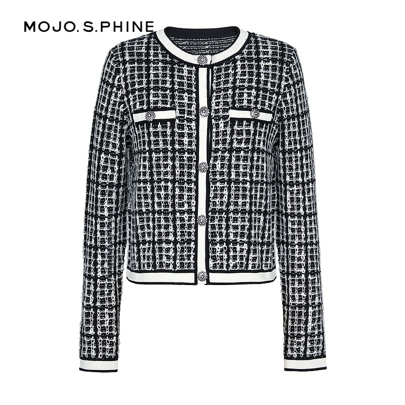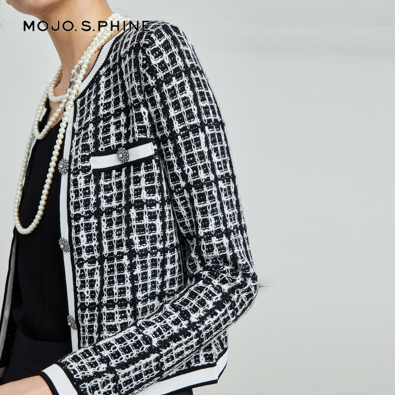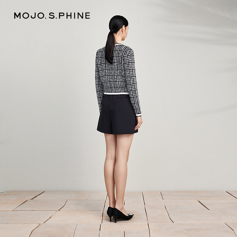 立体剪裁上衣女打底衫 MOJO莫佐格纹亲肤柔软针织开衫 2024年新款