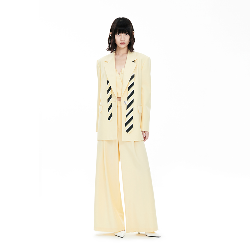 套装 马克华菲女装 阔腿裤 条纹显瘦休闲西装 时尚