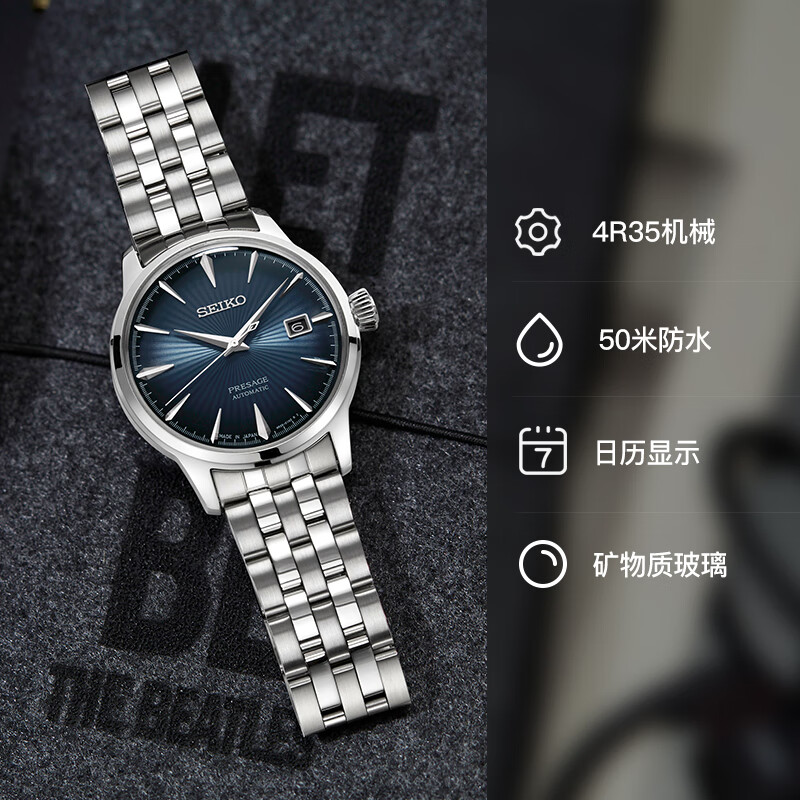 领航鸡尾酒商务机械表钢带男表SRPB41J1 SEIKO精工手表男 自营