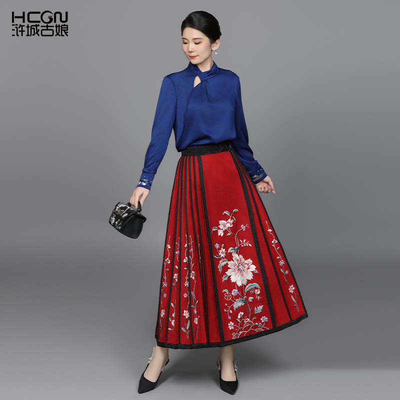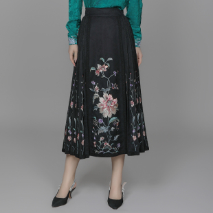 高腰梨型身材A字裙伞裙 半身裙百褶裙大码 胖mm显瘦百搭西装 中长款