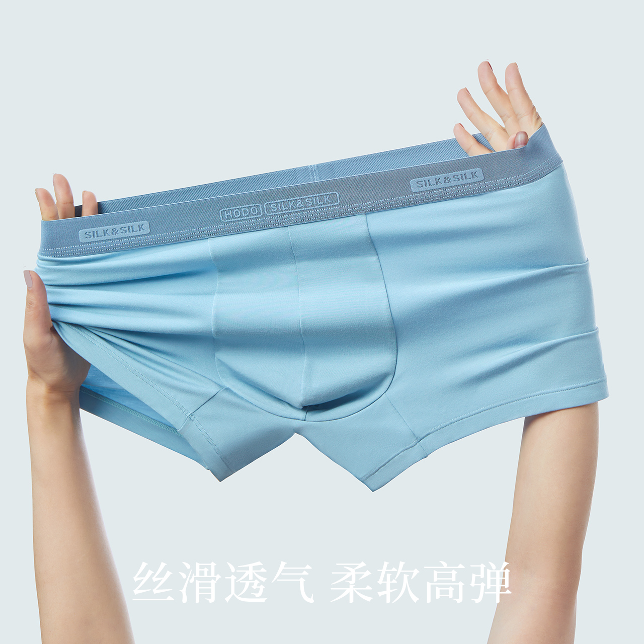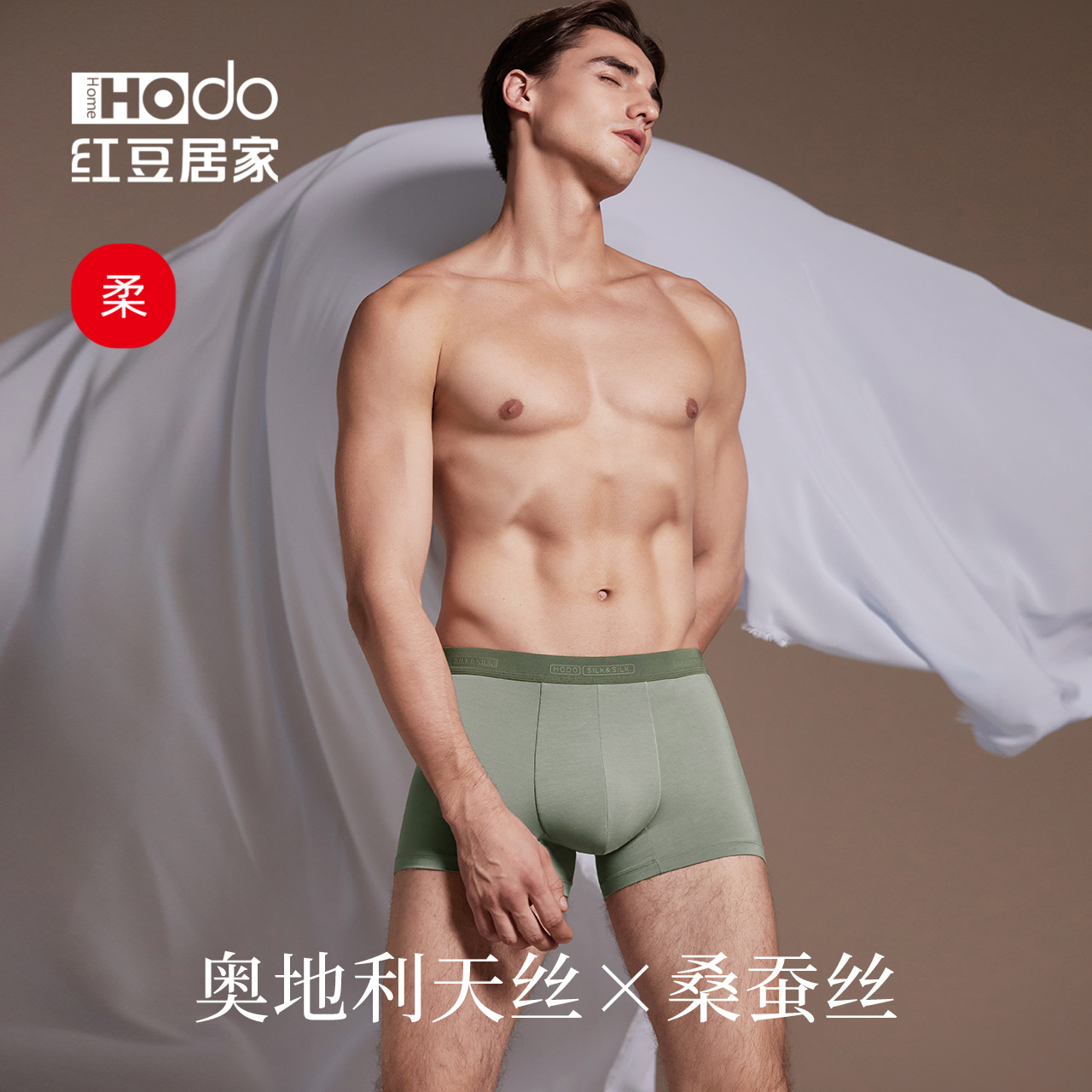 丝丝裤 凉爽透气大码 男士 莫代尔棉含蚕丝抑菌裆平角裤 内裤 红豆