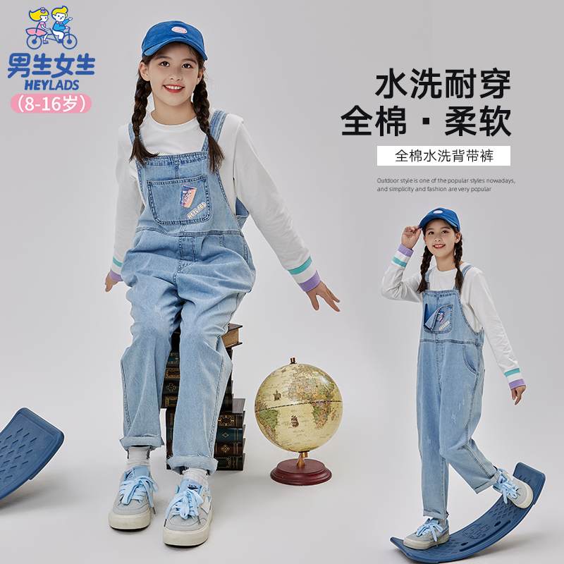 女童牛仔背带裤 中大童女孩长裤 秋装 子春秋新款 儿童裤 男生女生童装