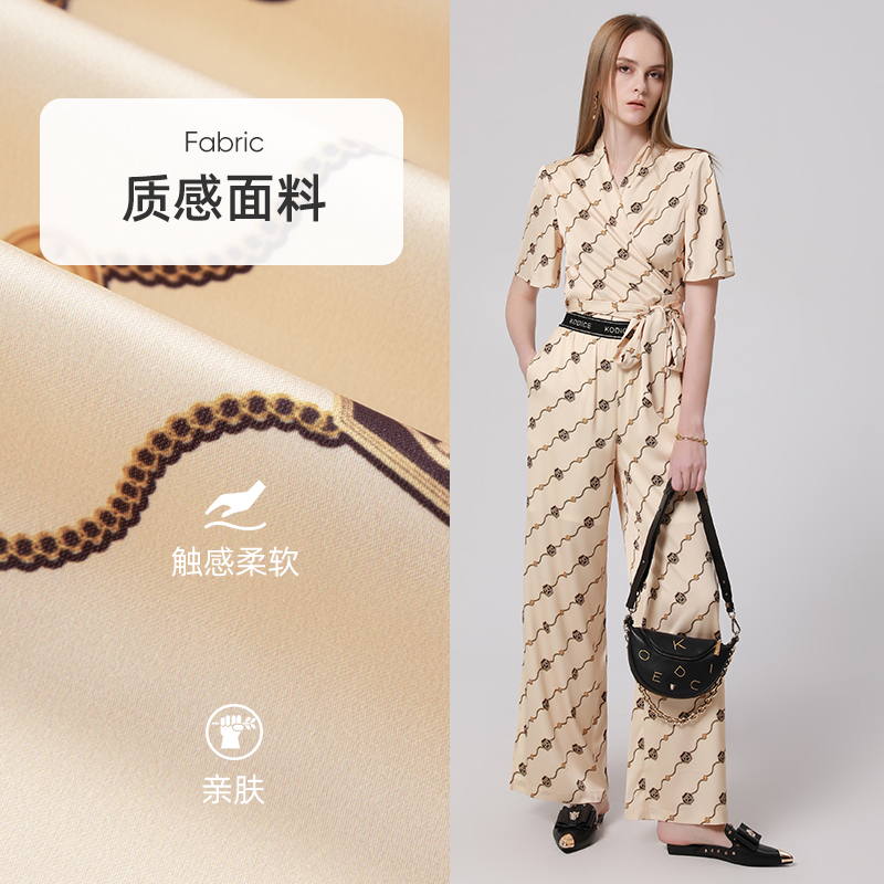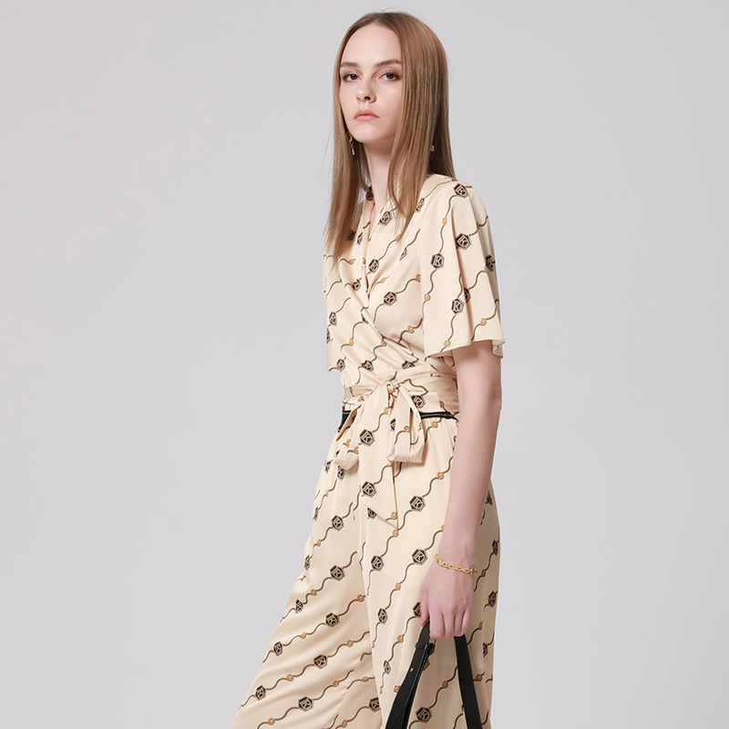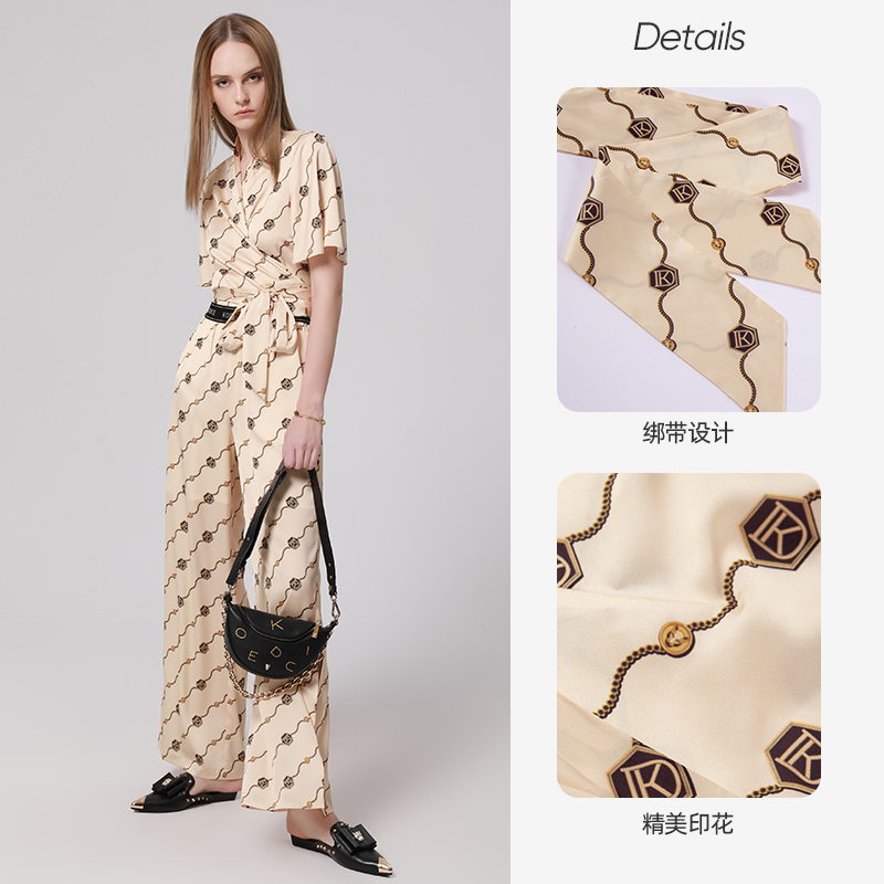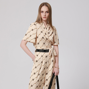 时尚 kodice女装 上衣短袖 短款 气质 logo印花绑带交叉V领修身