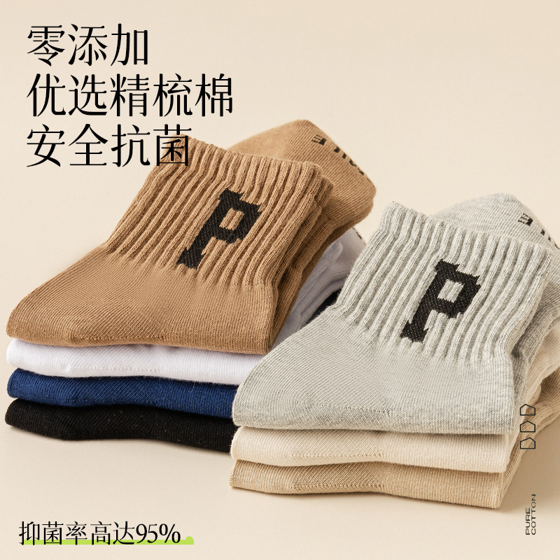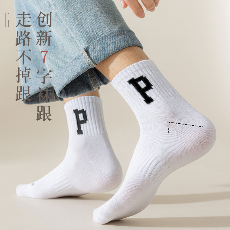 南极人纯棉袜子男款 夏天长筒袜 中筒袜防臭防脚气运动吸汗白色男士