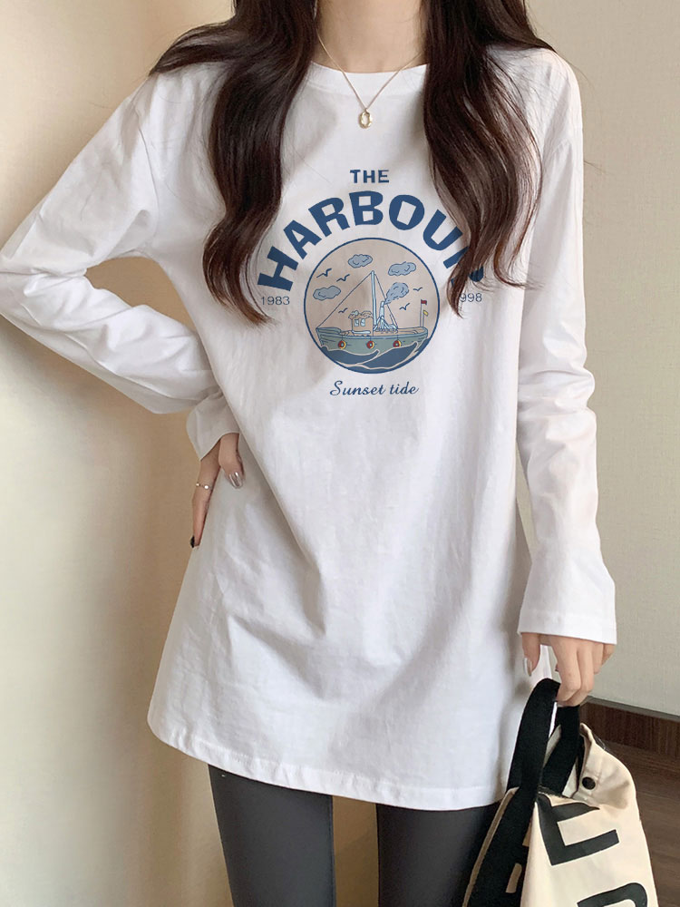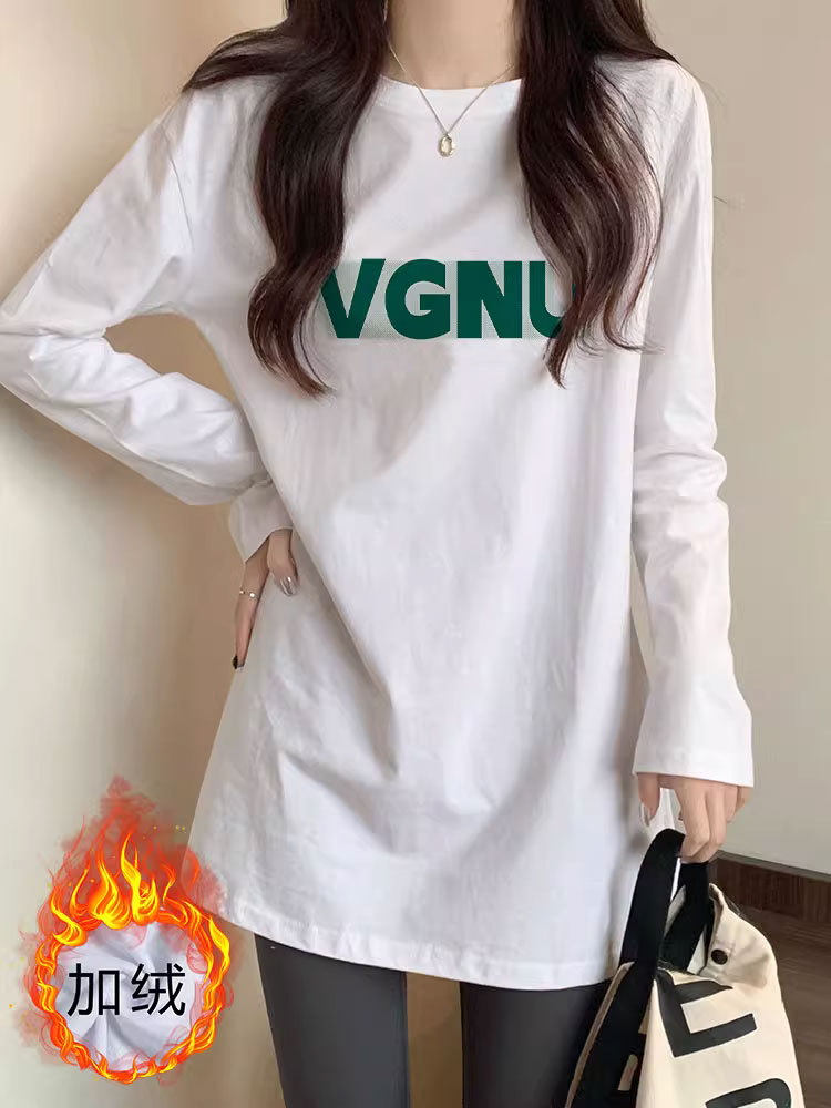 遮屁股加绒长袖 高级感中长款 t恤上衣 女秋冬季 白色内搭德绒打底衫