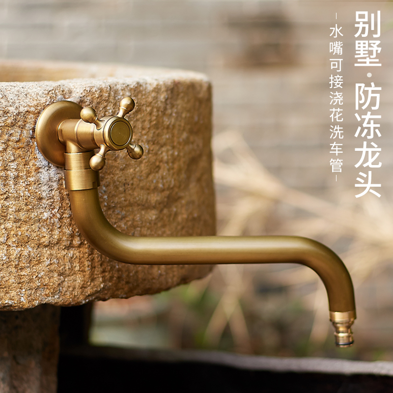 中式 庭院户外仿古水龙头室外阳台拖把池洗衣池入墙单冷可旋转笼头