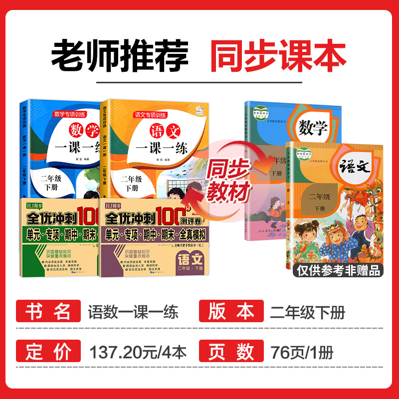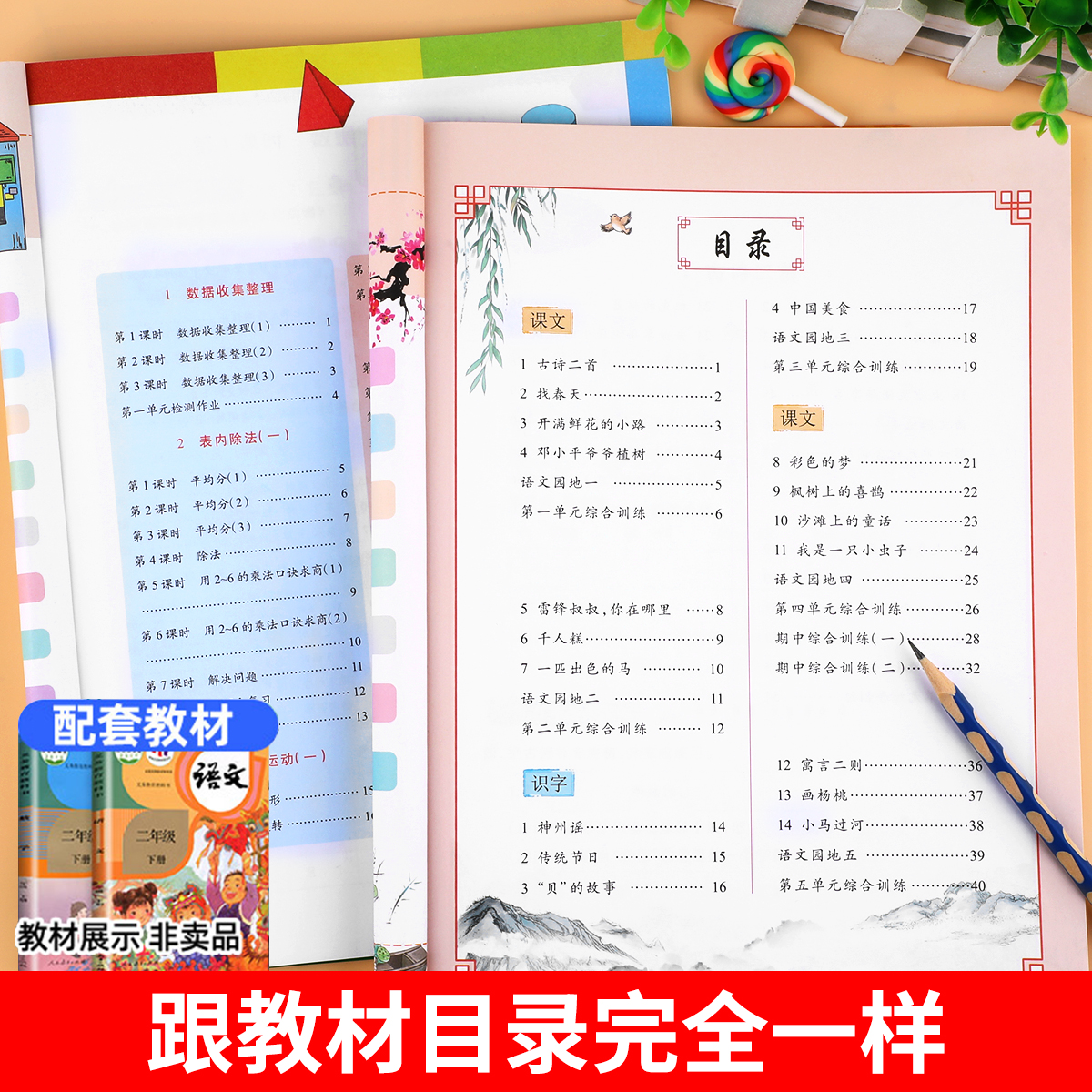 二年级下册语文数学同步训练全套人教版 试卷测试卷 一课一练小学2下练习册下学期练习与测试教材课本随堂课堂课后人教专项训练题
