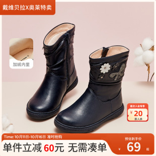 儿童皮靴女宝宝童鞋 戴维贝拉女童加绒保暖靴子冬季 清仓特价