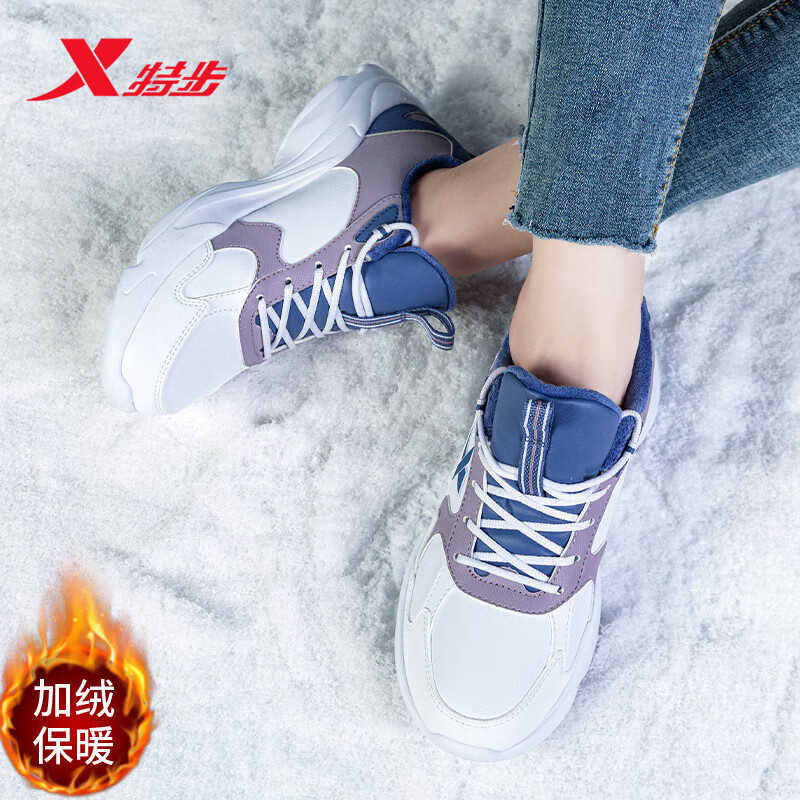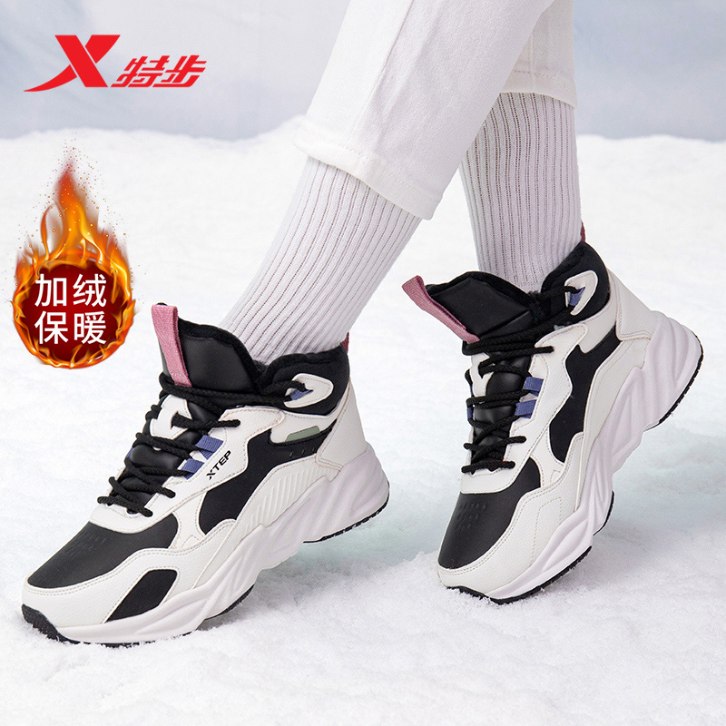 棉鞋 高帮官方休闲运动鞋 秋冬季 加绒保暖二棉冬鞋 女 新款 特步女鞋