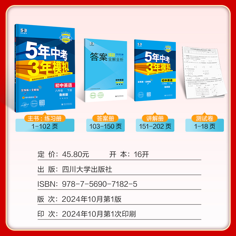 曲一线2025春五年中考三年模拟八年级下册英语鲁教版 五四制5年中考3年模拟8年级英语练习册五三初中同步练习册