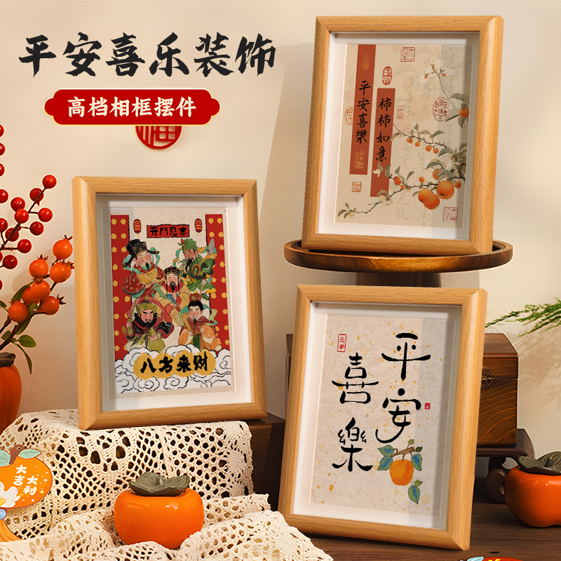 平安喜乐柿柿如意装 饰画摆件客厅入户玄关相框摆台轻奢乔迁摆画新