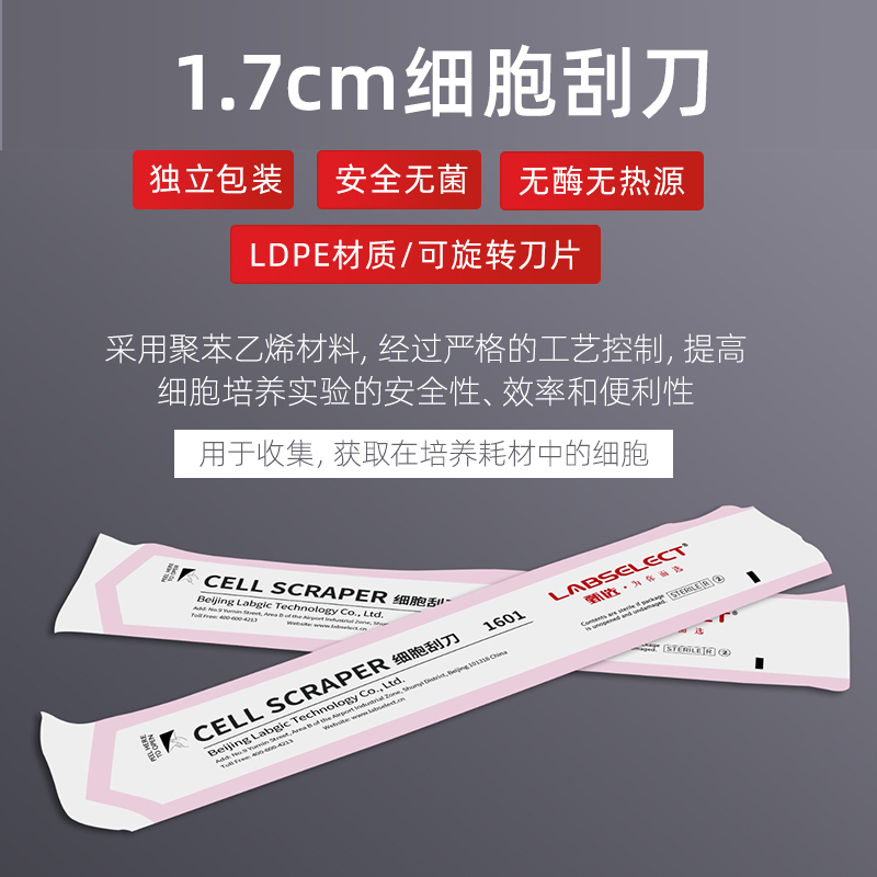 1601 LDPE材质刀片 1.7cm细胞刮刀 独立包装 1602 细胞培养可旋转刮刀 甄选LABSELECT